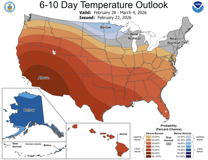 Overall, the week looks lighter on major data releases but still heavy on policy headlines. Markets will likely take their cues from macro developments and trade policy direction, with President Trump’s State of the Union address on Tuesday, the 24th, likely to draw particular attention for any signals on trade, economic policy, and the broader outlook. Additionally, attention will also continue to gradually shift toward spring planting expectations.