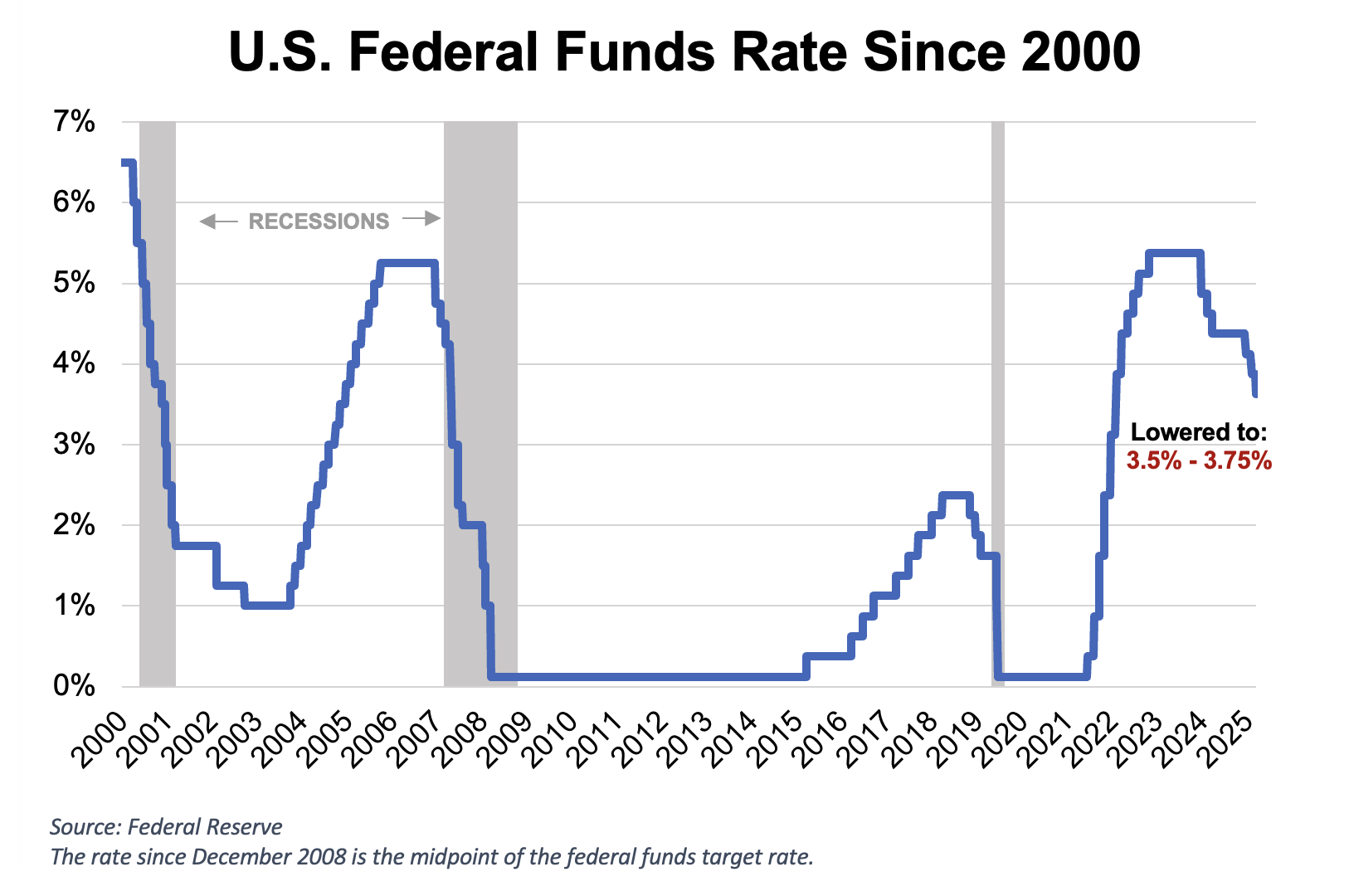 • The Fed delivered a third straight 25-basis-point rate cut last week, lowering the target range to 3.50–3.75% and striking a notably dovish tone. Chair Powell pointed to softening labor conditions and suggested recent payroll data may be overstated, while noting policy is now near neutral but still tilted toward easing. Markets responded quickly, with two-year yields posting their largest one-day drop in two months, the dollar sliding, and equities moving higher. Looking ahead, focus turns to this week’s delayed November payrolls and Thursday’s CPI, which could further shape expectations for additional rate cuts in 2026.