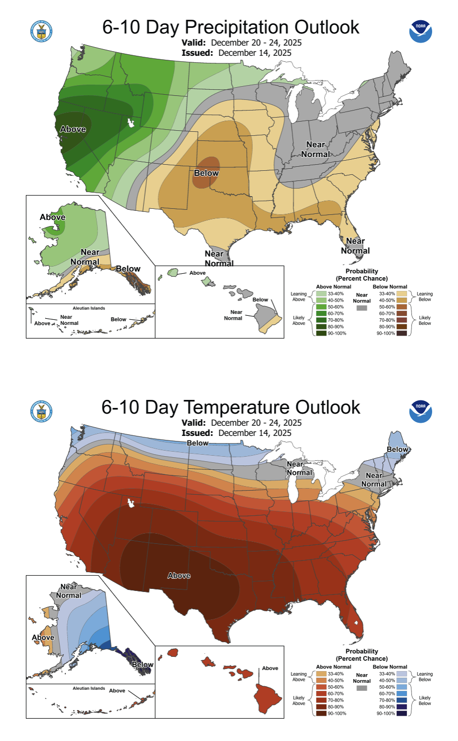 • President Trump announced the Farmer Bridge Assistance Program during a White House roundtable with farmers, outlining a $12 billion economic aid package for the 2025 crop year, including $11 billion earmarked for row crops. The ECAP-styled program is designed to provide near-term financial support until expanded benefits under the One Big Beautiful Bill Act take effect in fall 2026. Commodity-specific per-acre payment rates are expected the week of December 22 and will be based on USDA cost-of-production estimates and projected marketing-year prices. Producers must have acreage on file with USDA FSA by December 19, with payments expected by February 28, 2026, subject to payment and income limits. The relief is good news but featured an unwelcome new payment limit of $155,000 vs $250,000 in many recent packages, such as ECAP.
